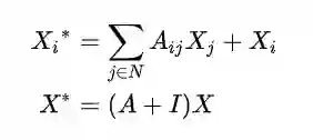 一般来说,聚合方式一般将邻居传来特征进行加权求和, 即可更新本节点的特征: