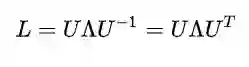其中 是n个特征值构成的对角矩阵, 是单位特征向量(列向量)组成的矩阵. 是正交矩阵,满足