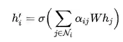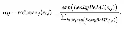 通过对 的邻居进行softmax, 就可以得到(学习出)节点间的关系系数: