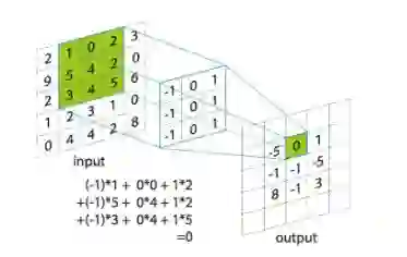 卷积网络的卷积, 本质是通过滤波器来对某个空间区域的像素点进行加权求和,得到新的特征表示的过程. 加权系数就是卷积核的参数,如图所示 :