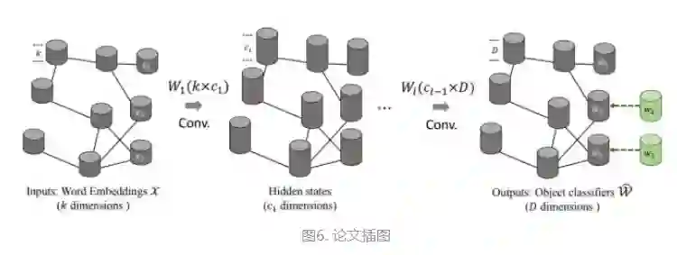 GCN的输入是每类的Word Embedding 向量, 最后一层的输出维度 和视觉向量的维度一致. 通过 均方误差(MSE) 来训练让节点最后的输出和对应的视觉向量相近.