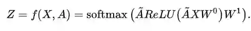 计算邻接矩阵 , 后得到 . 每个节点的最后 output 是 维特征向量(对应为 类):