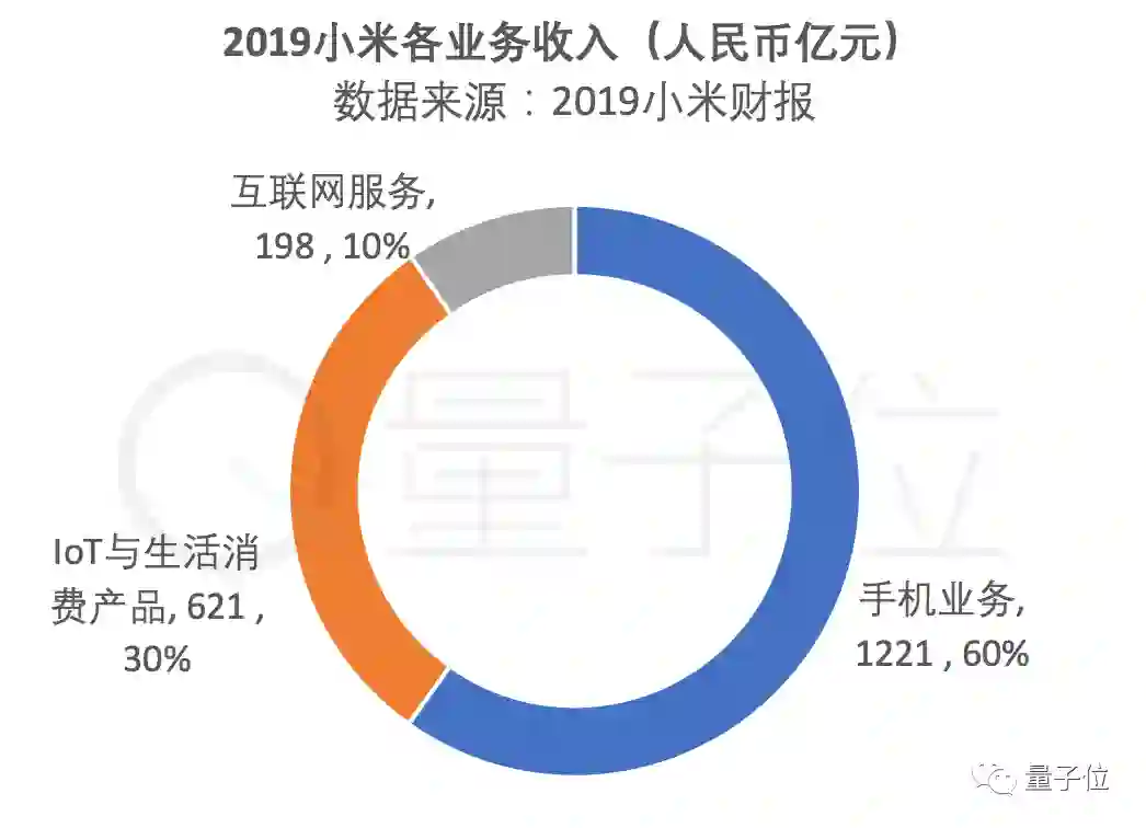 前面说华为是卖手机的。而小米呢,手机业务收入1221亿,比前年增长7.3%;IoT与生活消费产品收入621亿,比前年增长41.7%;互联网服务收入198亿,比前年增长24.4%。