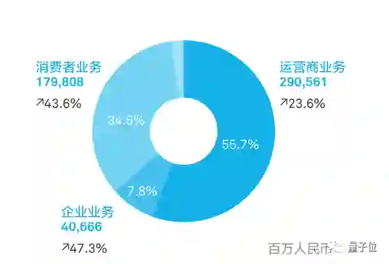 其中,消费者业务,也就是手机手环之类的产品收入为4673亿元,比前年增长34%,占到总体营收的54.4%