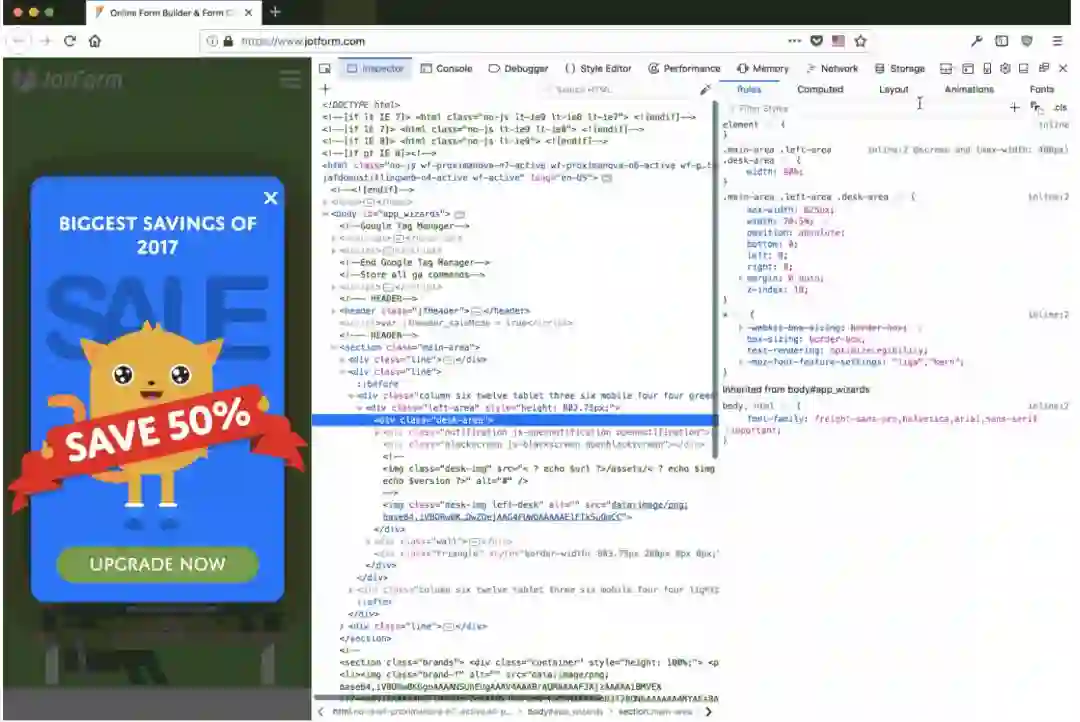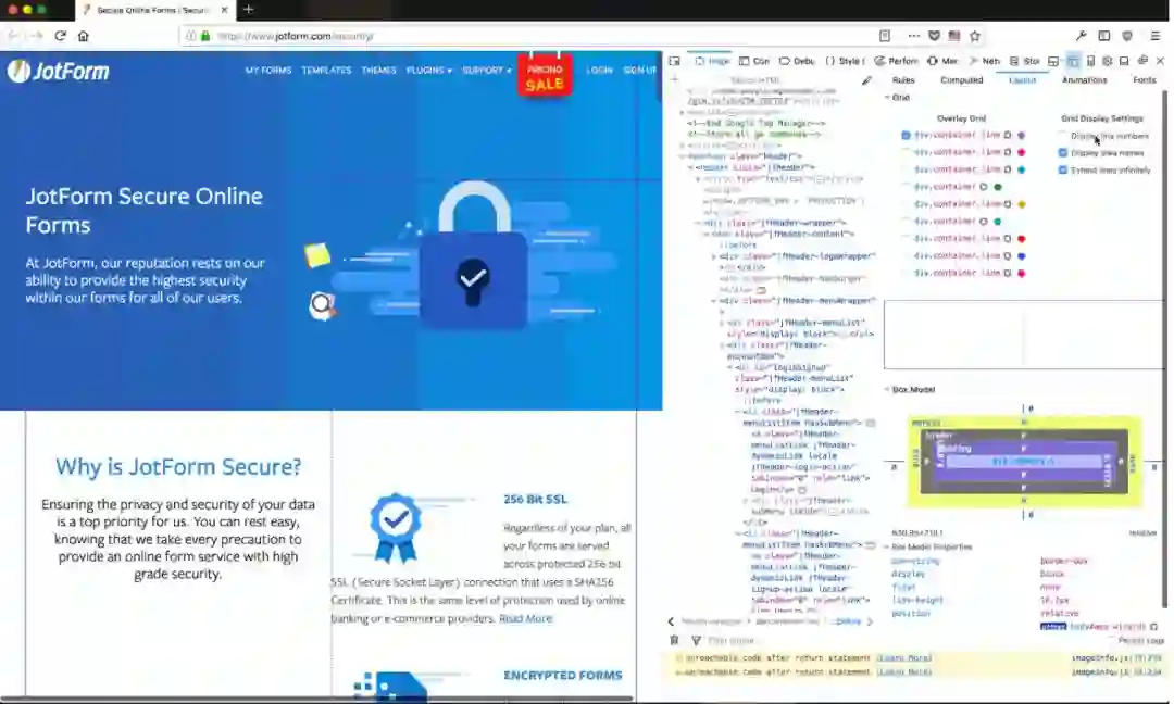 CSS 网格布局是该领域的最新创新之一。通过使用 DevTools,我们可以看到自己的“display: grid”特征元素,还可以轻松地永久性打开或关闭行号(Line number)、区域名(Area name)、延伸线(Extend line)等特征。