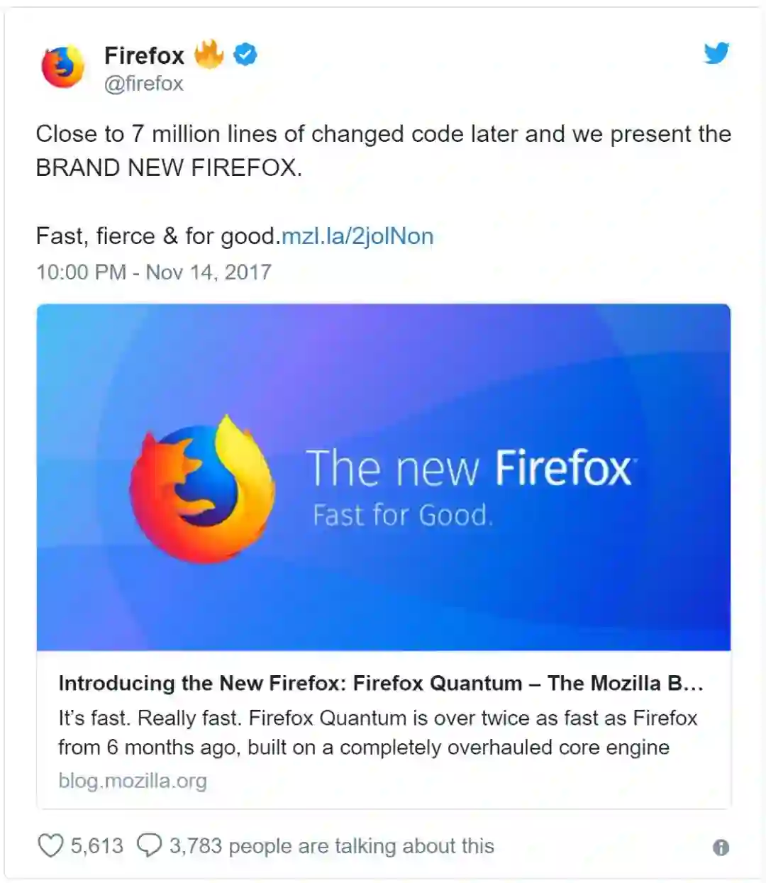 来源:https://twitter.com/firefox/status/930435170288656384