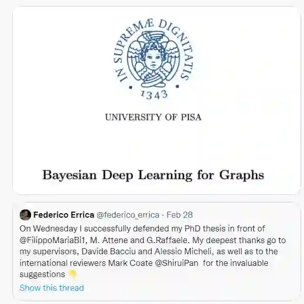 图形、贝叶斯与深度学习如何结合?这是一个有趣的问题。来自PISA大学博士论文Federico Errica《Bayesian Deep Learning for Graphs》系统性阐述了这一框架,非常值得关注!