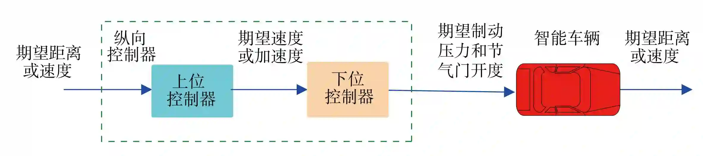 纵向控制主要研究智能车辆的速度跟踪能力,控制车辆按照预定的速度巡航或与前方动态目标保持一定的距离。