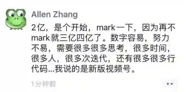 6月22日,张小龙高调地发了一条朋友圈,宣布微信视频号日活用户已经2亿,“mark一下”,对微信视频号接下来的发展充满信心。