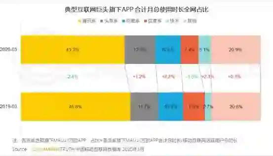 2020年一季度,传统BAT三巨头的市场占比基本持平或微微下滑。