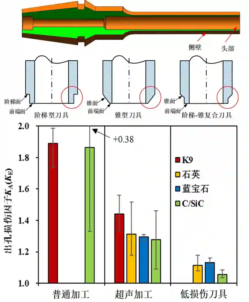 2. 基于加工损伤形成机理,提出低损伤刀具设计方法,使旋转超声加工进一步减小50%以上的出孔损伤,同时出孔损伤的工艺可控性得到显著提升。