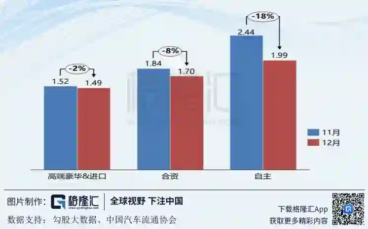 2018年在车市销量低迷的情况下,经销商的库存也一直处于高位,远高于去年同期数据,下半年的库存系数一直位于1.5的预警线以上。自主品牌方面,库存系数更是达到一度达到近2.5的危险水平。