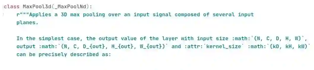 查看nn.MaxPool3d的说明文档,截图如下,可以看到它的输入和输出是5维张量,于是修改上面的代码,把输入调整到5维张量。