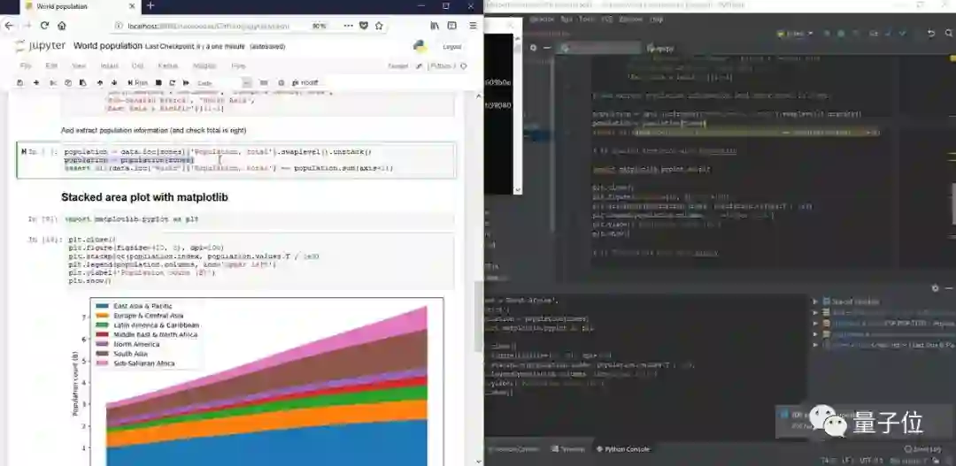 上面就是Jupytext使用过程的一个例子:把一个Jupyter Notebook存储为.ipynb和.py两种文件格式、用PyCharm打开.py脚本来修改代码、保存之后刷新浏览器,就能在Jupyter Notebook里看到新结果了。
