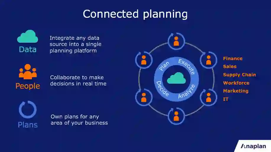 Anaplan 的业务主要面对商业客户。通过专利内存计算引擎(Hyperblock)架构多租户数据架构 SaaS平台,产品可实现动态协作和智能规划;通过连接人员、数据管理、项目规划、实时规划决策,最终提高商业效率。Anaplan 另外一个巨大优点是它的服务完全基于“云”,并且支持“零部署” ,用户们可以在智能设备上登录平台Anaplan就可以连接服务。