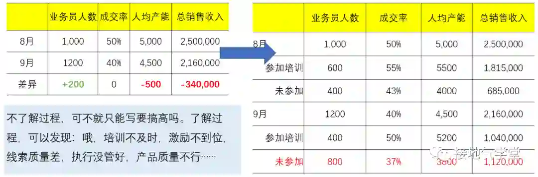 如果以上统统没有,只有一张成交订单和订单上的销售个人编号。那就真的没啥好分析的了。最后的数据就只有:销售额=业务员人数*有成交比例*人均成交金额。