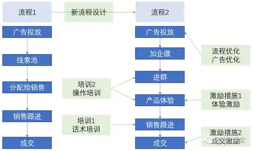 但有的流程可能很长,比如卖软件的,从接收客户线索到成交,有N多步骤,这里是不能偷懒的,要一步步认真梳理,最好画出流程图(如下图):
