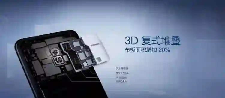 5G 手机的另一大难题是内部空间不够。相比 4G 模块,5G 模块占用的面积大了很多。在“寸土寸金”的机身内部,必须想方设法给 5G 模块“挪腾”出空间。APEX 2019 用的是 3D 复式堆叠方案,把放不下的元器件叠成两层,这样的设计最终可以增加 20% 的可用面积。