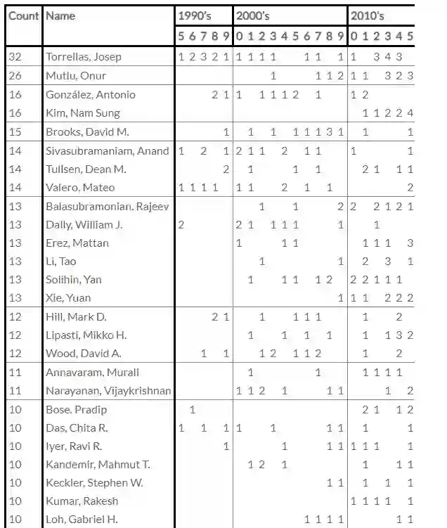 计算机体系结构领域的三大顶会分别有自己的名人堂,HPCA 名人堂成员包括 GPU 之父 Bill Dally 等。HPCA 名人堂的入选要求极为严苛,入选标准为发表 8+ 篇 HPCA 论文,论文平均入选率仅为 15%。