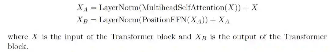 Transformer是通过将Transformer blocks彼此堆叠而形成的多层体系结构。Transformer blocks的特点包括multi-head self-attention机制、positionwise前馈网络(feed-forward network)、层归一化(LN)模块和残差连接器(residual connectors)。
