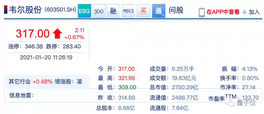 随后,韦尔股份的股票一路大涨,从2019年5月的38.47元/股,涨到如今的300多元/股。