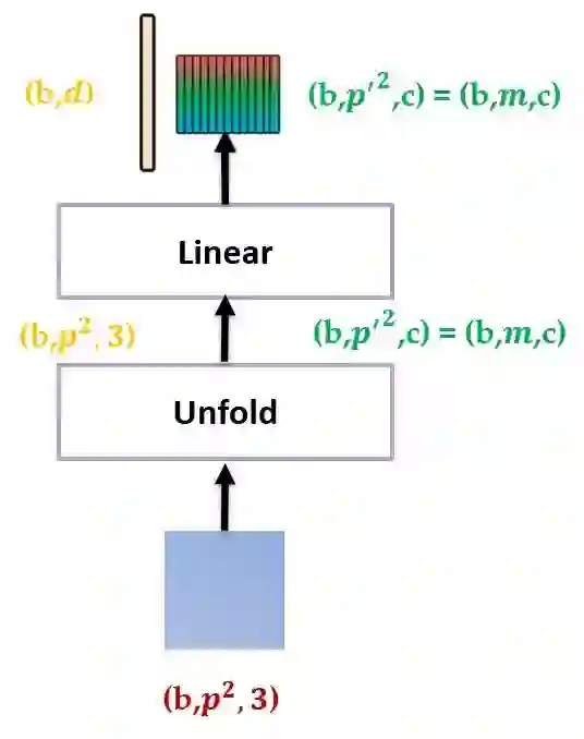 式中, 代表第 个视觉 "sentence" 的第 个视觉 "words",这一步其实是把每个 patch 通过PyTorch 的 unfold 操作划分成更小的 patch,之后把这些小 patch 通过线性投影展平,就得到了: