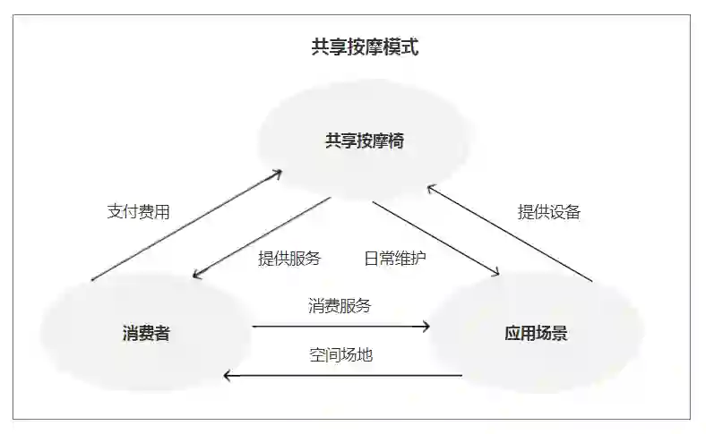 共享按摩切入大众出行的痛点:传统的按摩无法随时随地进行,且占用太多的时间;制造即时满足的爽点:利用碎片化时间按摩放松一下;找到虚拟自我的痒点:在等车无聊或坐车疲劳时,得到短暂的放松。