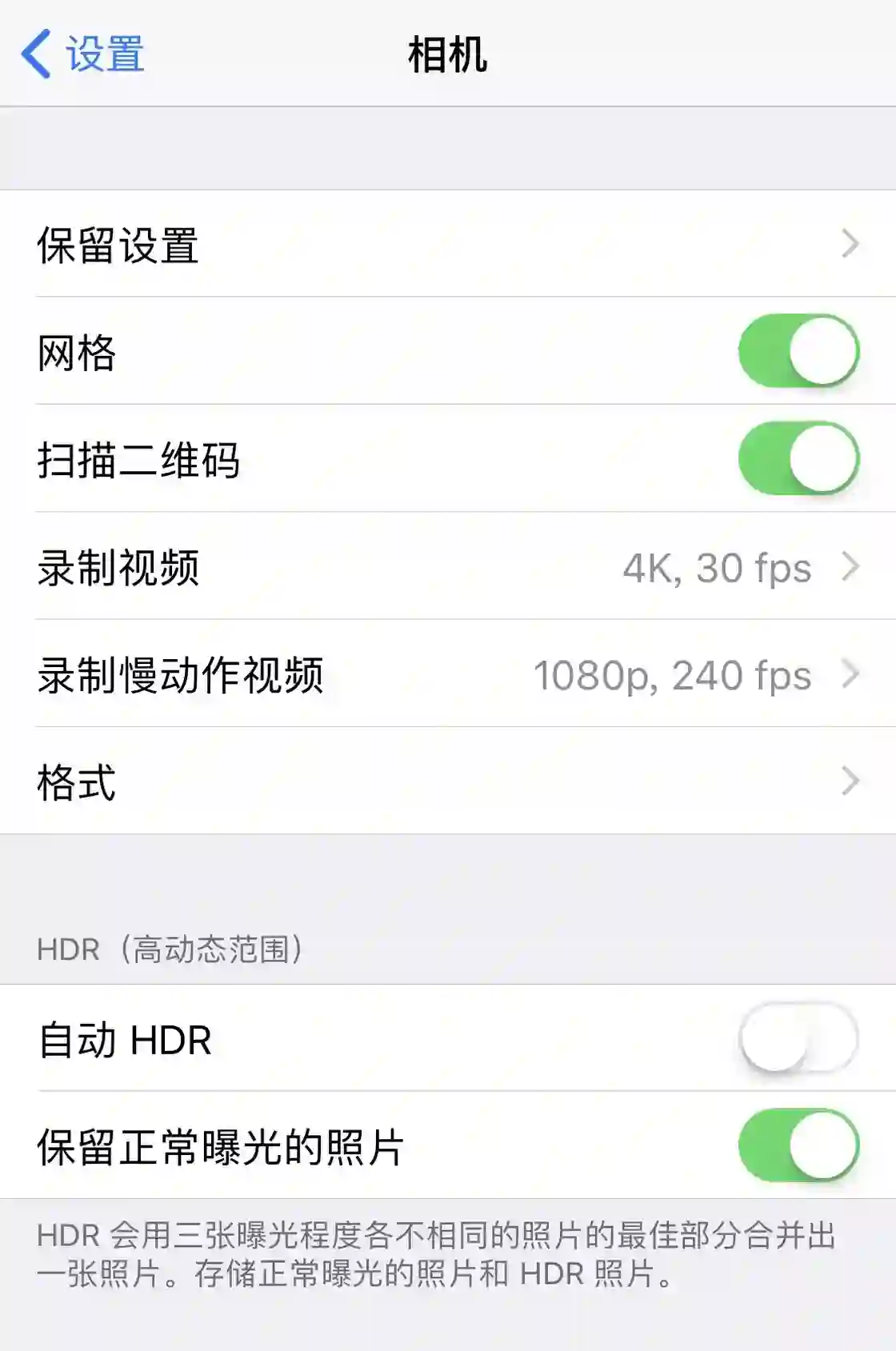 这里就主要说说「网格」和「自动 HDR」这两个设置