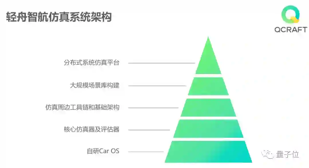 第四层是大规模场景库构建;最顶层则是分布式系统仿真平台,支持快速、大规模的仿真应用,在短时间内得出正确评估。