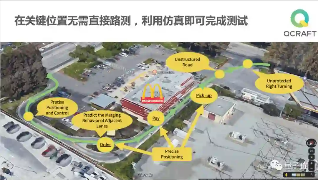 由于麦当劳这种场景是不允许多次实际测试的,这个视频只是众多例子中的一个,我们实际上生成了非常多个这种类似的场景,在仿真测试中评估器,都得到不错的结果后,才让车辆到实际场景中测试。
