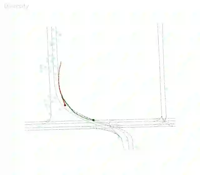 大家可以看到互动车辆的运动轨迹在不断变化,这个变化是由于我们借助生成模型在互动车辆的运动行为空间进行随机抽样而产生的。