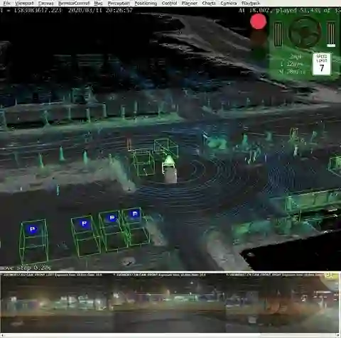 与这种主流的仿真软件不同,轻舟智航的仿真软件界面是很简单的,抛弃了复杂的渲染工作,仅保留了感知结果,包括3D Box和雷达点的叠加。我们为什么不利用游戏引擎,造一个好看的模拟城市呢?