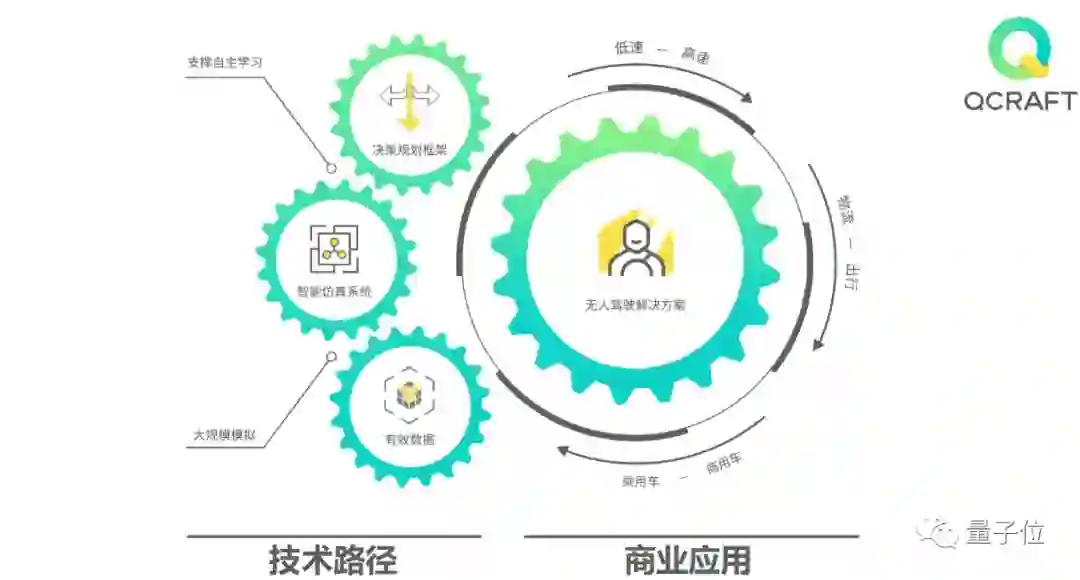 在技术路径方面,轻舟智航重视自动化和测试。有效数据、大规模智能仿真系统以及可自主学习决策规划框架是推动轻舟智航技术不断向前转动的齿轮,也是我们独特的技术路径。