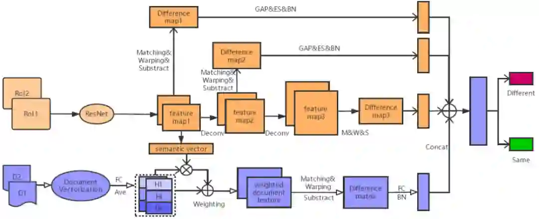 人物重识别模块(Person Re-identification)的主要作用是在人物检测模块的基础上,判断每一个候选的人物出现区域是否包含了目标人物c。具体来说,模型的输入为一对 <目标查询 q,候选 g>,我们先是对候选 g 包含的人物区域以及附近的文本信息进行特征抽取,得到候选 g 的多模态特征,继而参考 Y.Shen et al. (2018) 中的张量积匹配方法,以度量学习的思路,计算候选 g 与目标查询 q 之间的相似度。模型的输出为一个二元数组,判断目标对象和候选对象是否属于同一个人物,[1,0] 代表是,[0,1] 代表否。