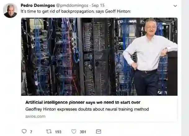 Pedro Domingos,华盛顿大学计算机科学的教授,著名的机器学习专家,《终极算法》(Master Algorithm)畅销书作者。在抛弃反向传播上他也提出了自己的方法:离散优化。