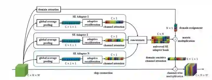 该论文提出了一个通用的物体检测模型,适用于任一目标检测场景,在多个数据集上表现良好。该模型基于SENet,将多个SENet得到的特征图连接在一起,并且提出了domain attention,将其施加在连接好的特征图后,这样能够使模型更好地适应不同场景下的目标检测任务。