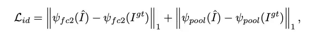 人脸正向化需要保证正向化过程中尽可能的保留与输出侧脸相同的身份信息,所以本文也加入了身份特征的保留损失,分别对LightCNN-29[5]最后一个池化层和全连接层的特征向量计算L1距离。