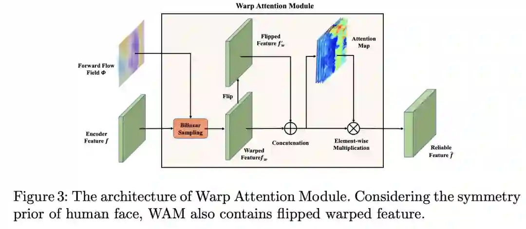作者根据人脸对称先验对得到的特征图进行水平翻转,再通过一个注意力模块进行特征融合,消除翻转特征带来的信息混乱。