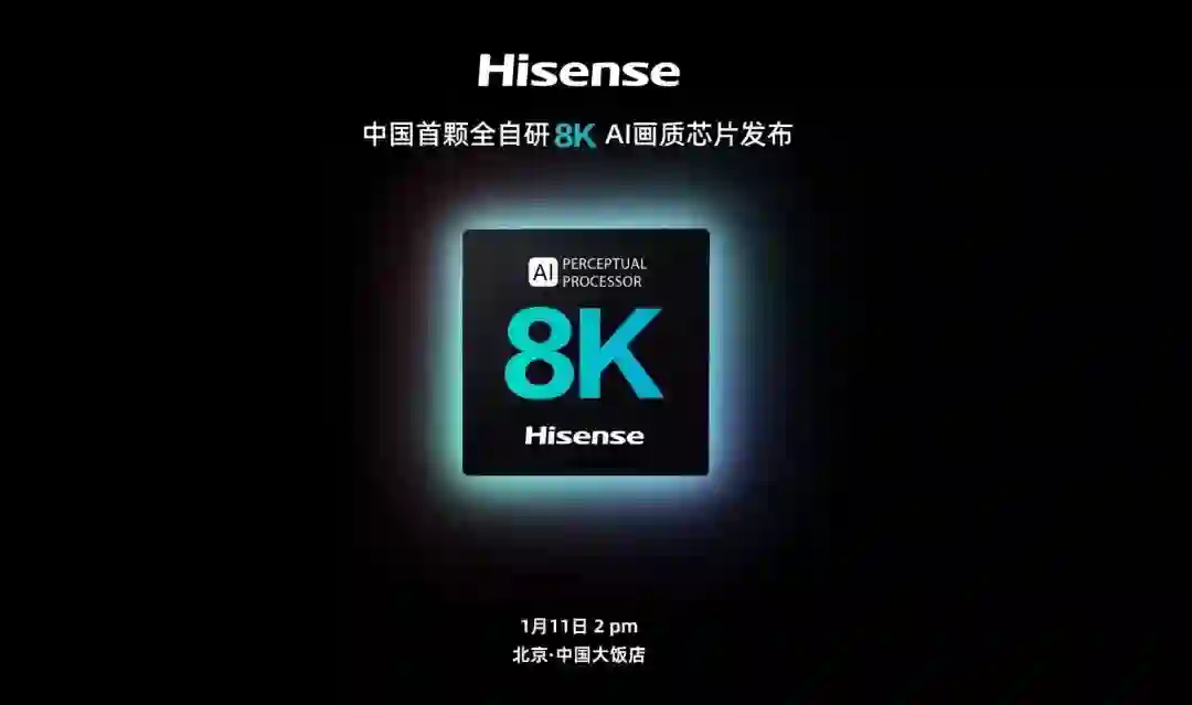 近日,海信电视官微预告,中国首颗全自研8K AI画质芯片将于1月11日下午14点在北京中国大饭店发布。预热中,海信写道“一万年前,我们用语言传承历史;一千年前,我们用文字记录文明;一百年前,我们用显示,把想象照进现实。1月11日,海信电视透过创新,预见更清晰的未来。”