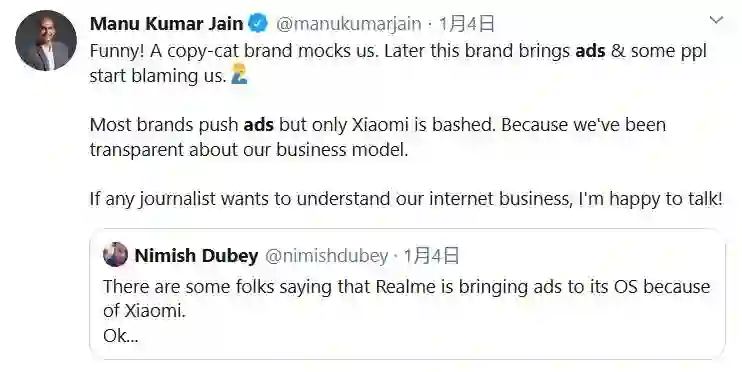 如果小米达成了这个承诺,只有「普通广告」的小米能走上高端吗?没准还真能。我不理解为什么小米中国区在系统广告这件事情上表现得那么唯唯诺诺,明明广告占了小米营收相当的一部分,为什么小米中国区不能硬气一点直接回应?