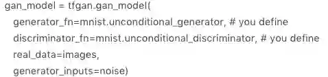 TFGAN 库的地址为 https://github.com/tensorflow/tensorflow/tree/master/tensorflow/contrib/gan, 主要包含以下几个组件: