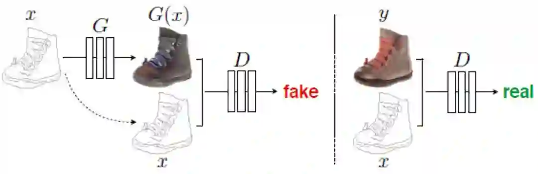 Phillip Isola 等提出了基于 CGAN 的图片生成图片的对抗神经网络《Image-to-Image Translation with Conditional Adversarial Networks》。网络设计的基本思想如下所示: