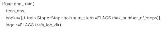 核心架构,主要包括创建 TFGAN 模型,添加 Loss 值,创建训练 operation,运行训练 operation。