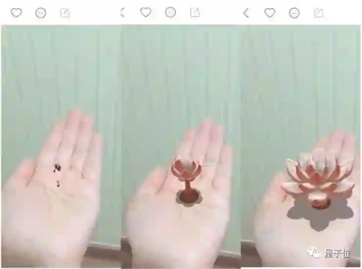快手Y-Lab实验室专门做一些为用户提供有趣体验的功能,比如这个手上长多肉的AR特效:一颗种子从天而降,掉落在手心,逐渐生根发芽,长成一颗多肉,之后慢慢变为盛放的样子。