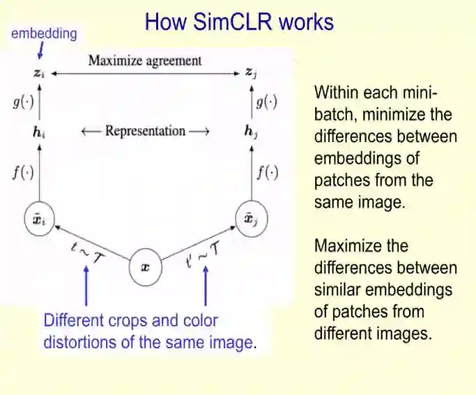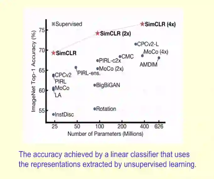 在演讲最后,Hinton 重点介绍了其团队使用对比损失提取一致性表示的最新实现 SimCLR,这是一种用于视觉表示的对比学习简单框架,它不仅优于此前的所有工作,也优于最新的对比自监督学习算法。