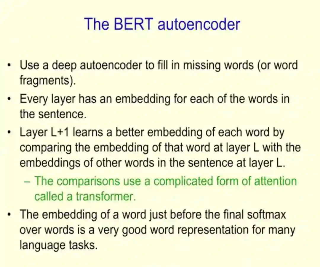 BERT 和变分自编码器(VAE)是无监督学习的一类典型代表,它们使用深度神经网络重建输入。
