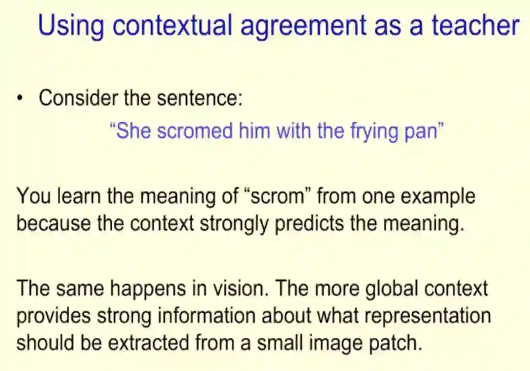 Hinton 提出使用对比损失(contrastive loss)来提取空间或时间一致性的向量表示