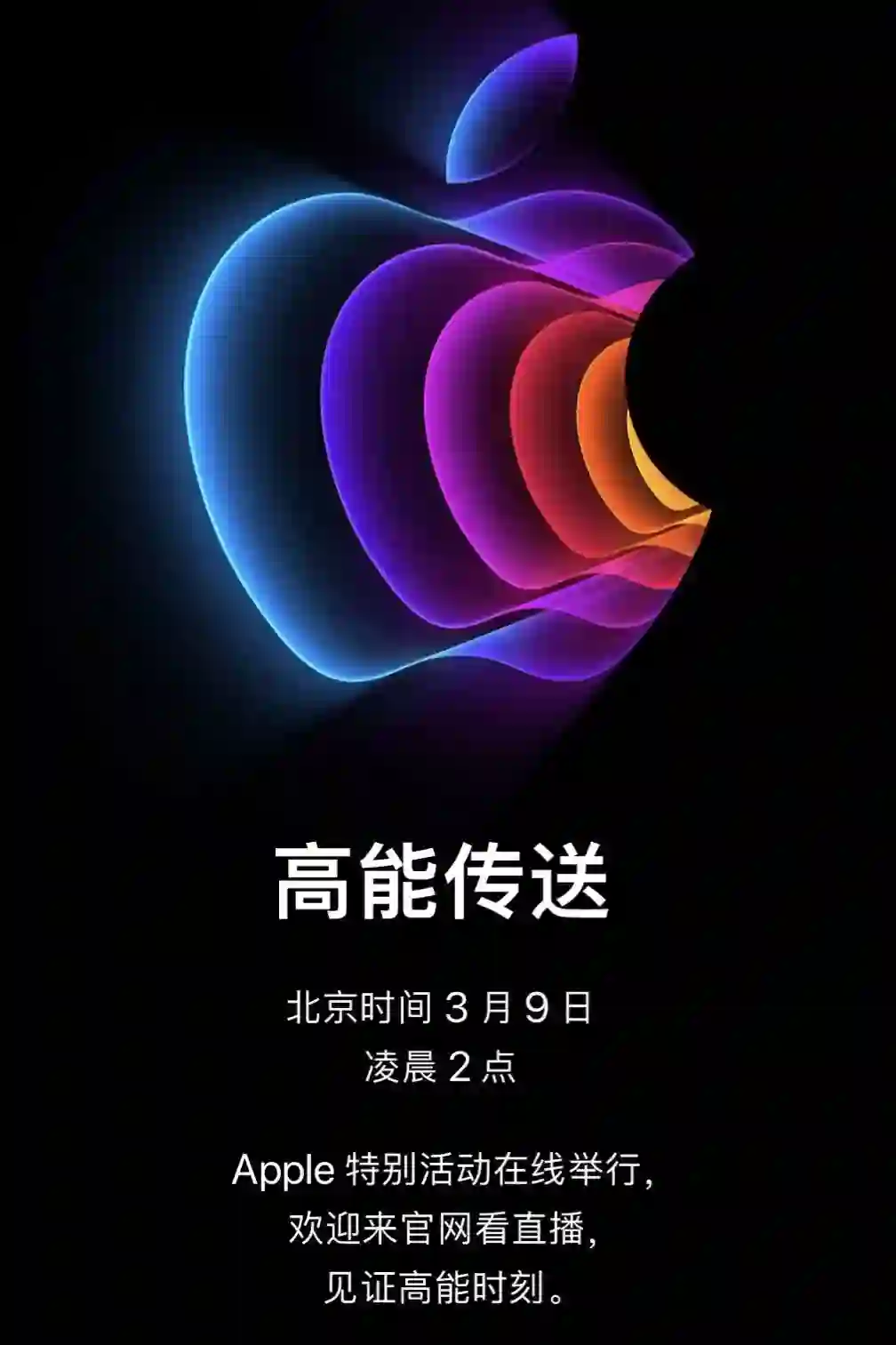 3月3日凌晨,苹果公司宣布将于北京时间3月9日凌晨2点举办主题为“高能传送”的线上发布会。此次发布会预计将会带来第三代iPhone SE(5G)、iPad Air 5、M1升级款新Mac等多种新品。