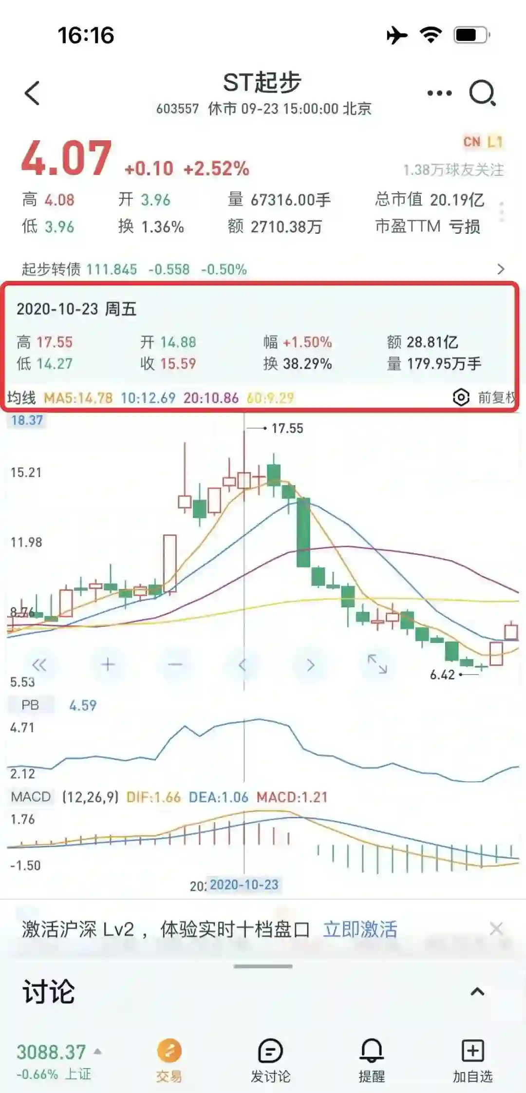 网红概念股的加持下,起步股份自9月17日至10月23日,股价一路上涨,一度逼近17元/股,在2020年10月23日股价报收15.59元/股。