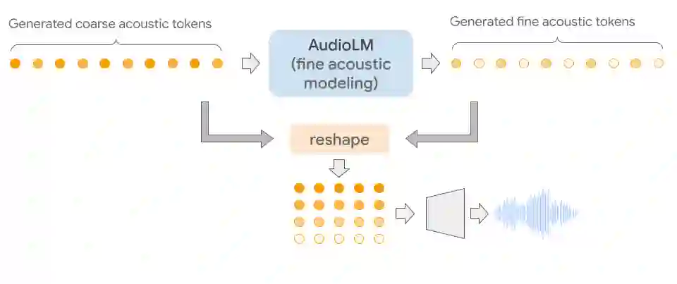 为了提高音质,除了语义标记外,AudioLM还利用了SoundStream神经编解码器产生的声学标记,捕捉音频波形的细节(如扬声器特征或录音条件),进行高质量的合成。